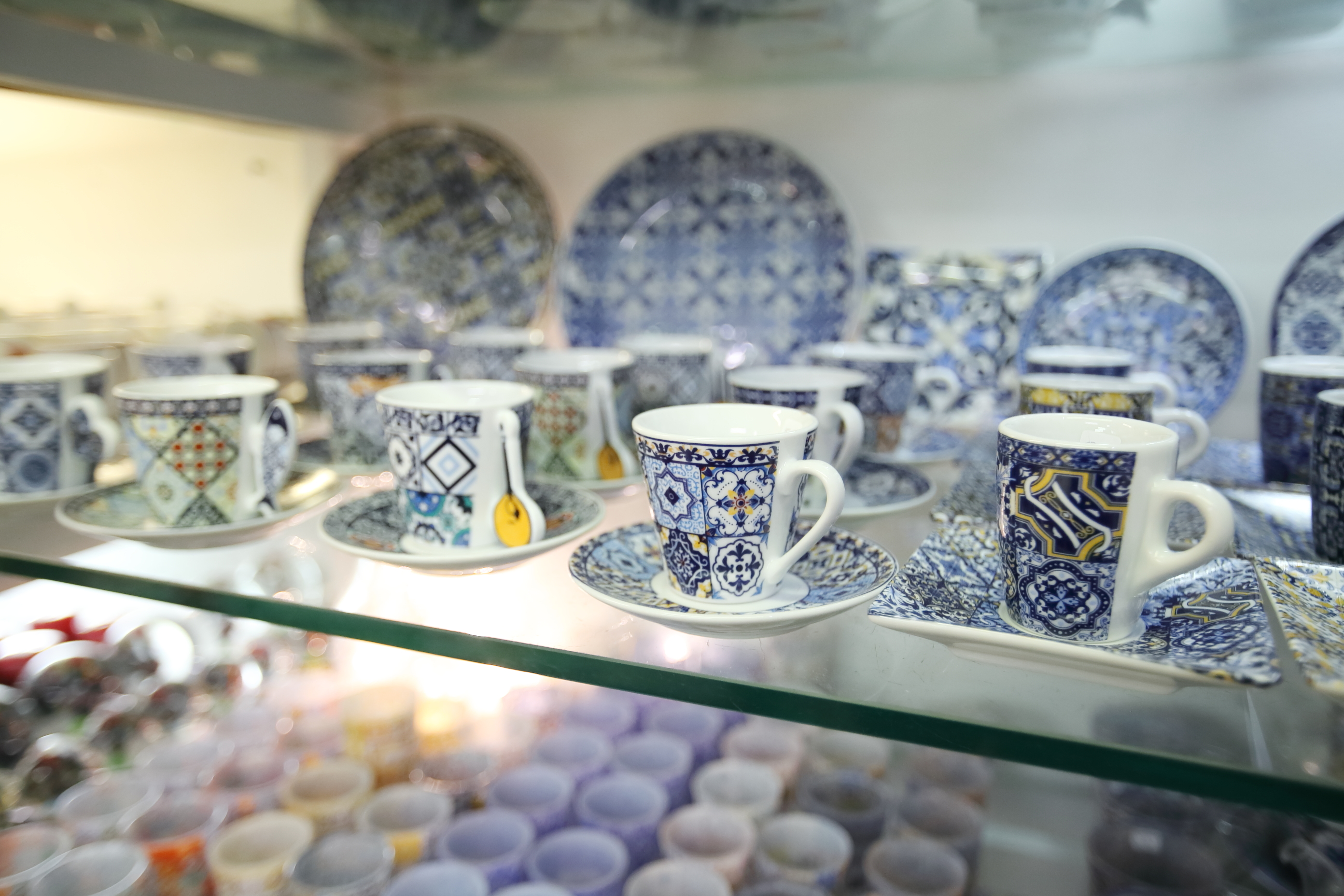 또 이렇게 벽에 포르투갈 접시, 컵 등 제품들을 많이 전시해두기도 하는데